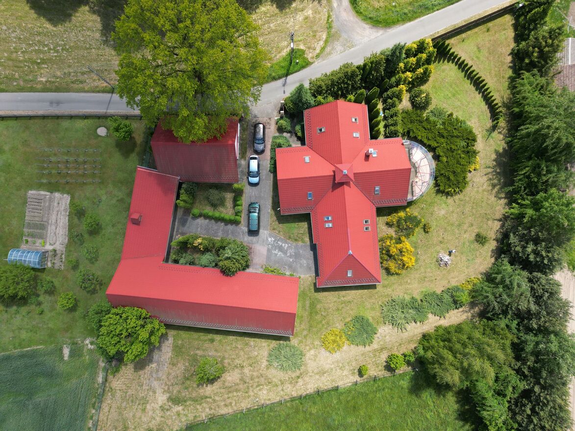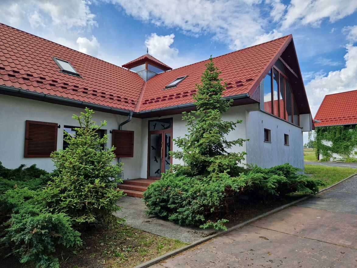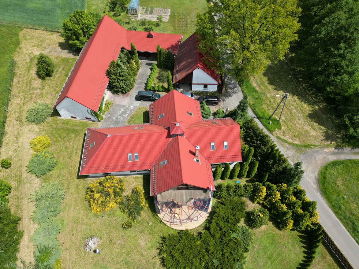 Na tyłach obiektu ogrodzona łąka. Wielkość działki gwarantuje możliwość postawienia paneli fotowoltaicznych o większej mocy bezpośrednio na gruncie.