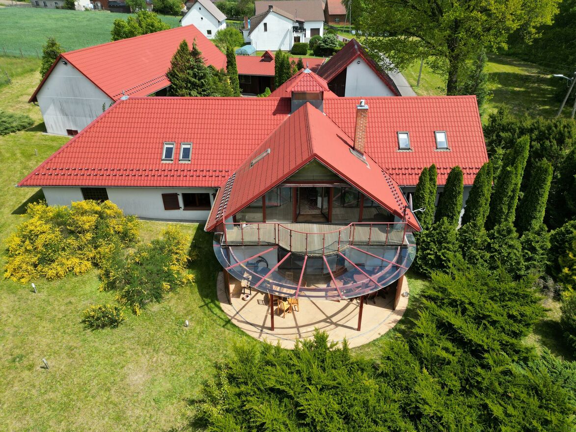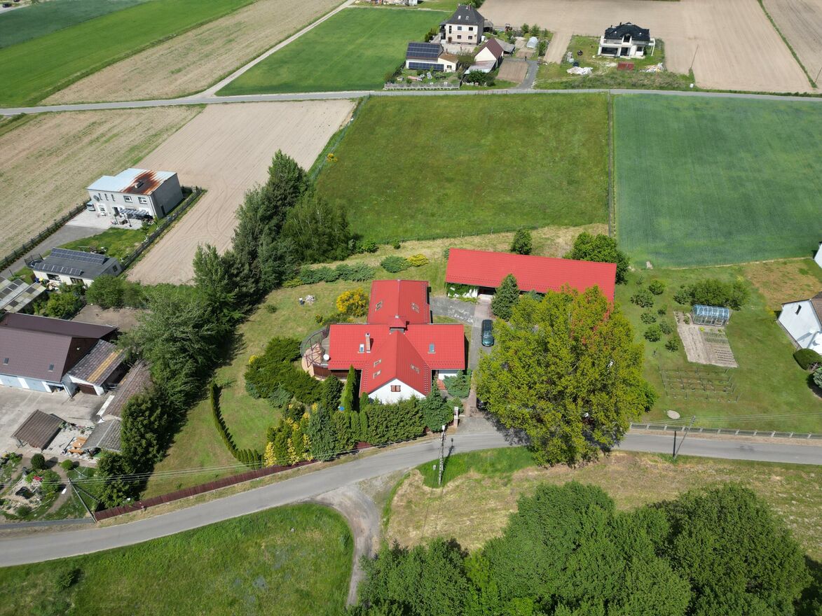 Budynek mieszkalny z początku XX wieku został gruntownie zmodernizowany i rozbudowany w 2010 roku a kształt budynku z lotu ptaka przypomina kształt krzyża. Taka konstrukcja gwarantuje przestronność i duże doświetlenie wszystkich znajdujących się w nich pomieszczeń powodując, że wszechobecna zieleń ogrodu przenika do wnętrza domu w którym w punkcie centralnym można posadzić drzewo lub dorodny ozdobny krzew. Budynek dwukondygnacyjny o powierzchni ok. 290 m2 z dwustanowiskowym garażem bryle.